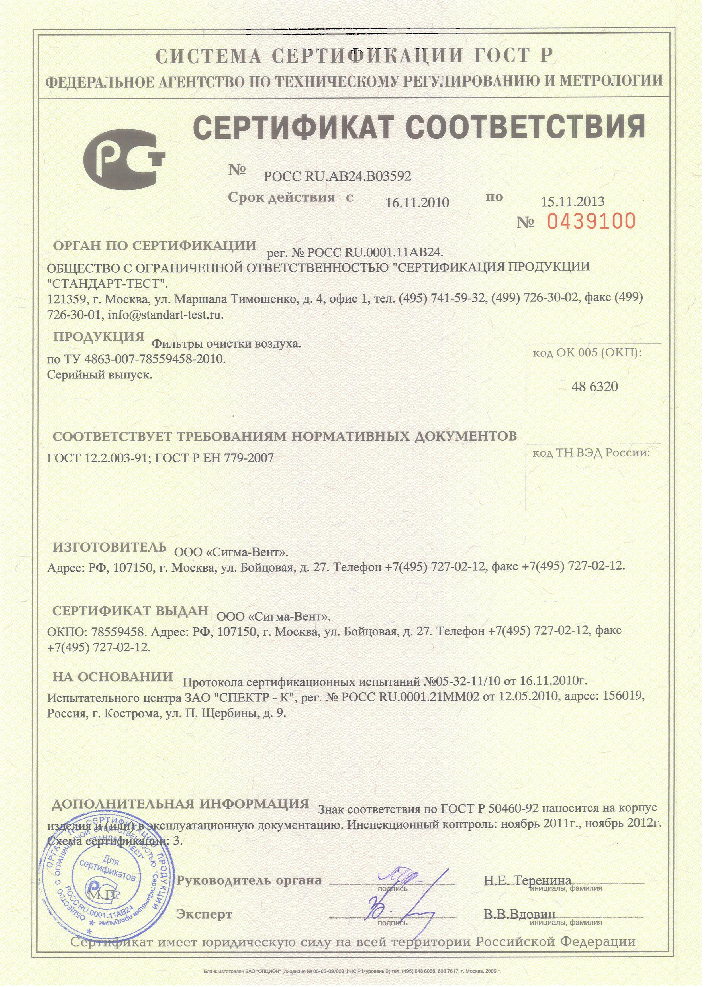 Лицензии и сертификаты компании Сигма-Вент - TopClimat.ru